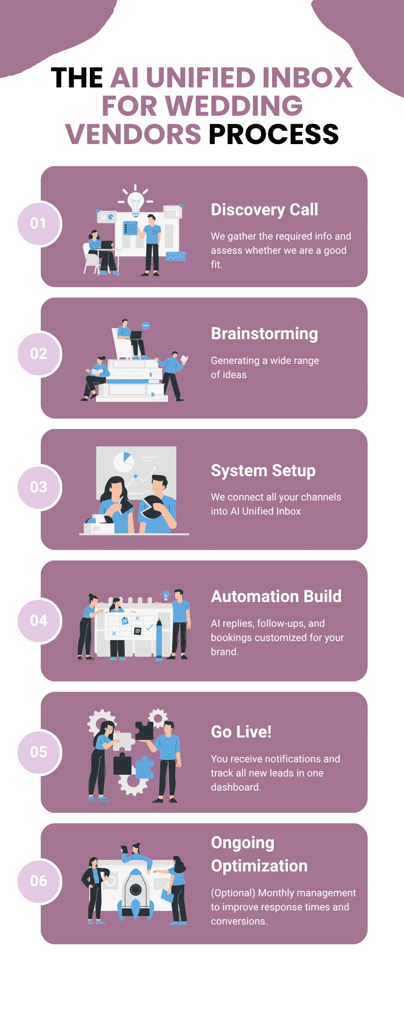 Modern wedding vendors are flooded with messages — from Instagram, Facebook, TikTok, Email, SMS, and WhatsApp — often all at once.